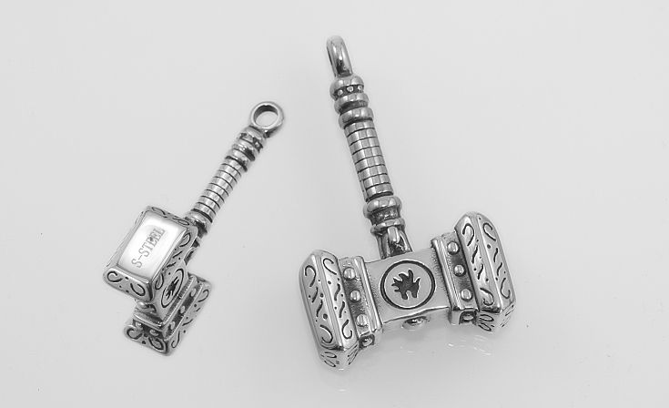 Pěkný přívěsek vyroben z masivu chirurgické oceli. Replika bájné zbraně boha Thóra. Leštěný povrch s rytinou zdobení keltskou symbolikou.