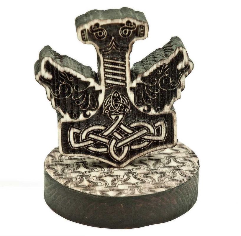 Dřevěný ručně zhotovený mystický artefakt, Thórovo kladivo